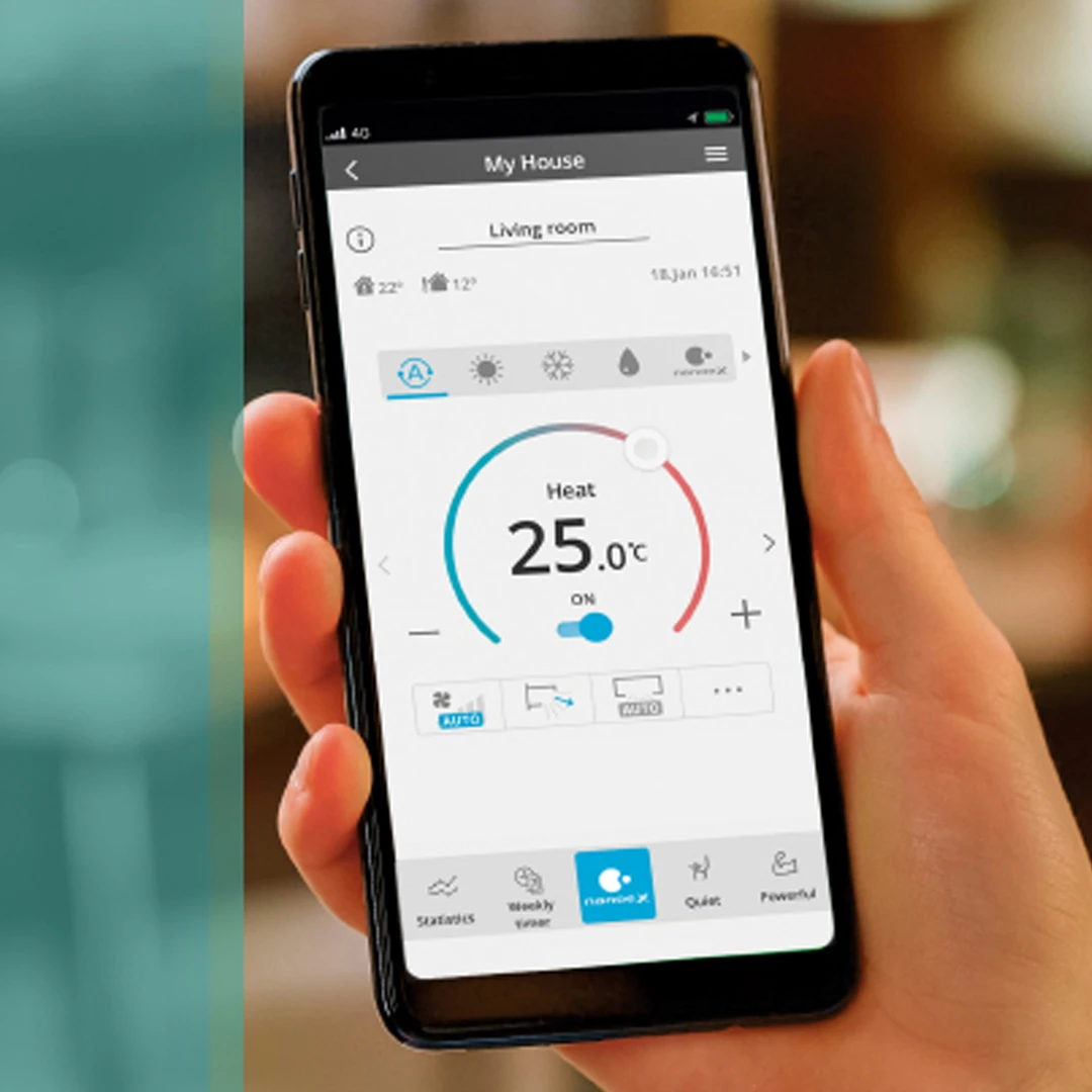 Ovládajte či monitorujte svoju klimatizáciu pomocou smartfónu s aplikáciu Panasonic Comfort Cloud kedykoľvek a kdekoľvek. Intuitívny dizajn ovládača umožňuje jednoduché ovládanie a pohodlný použitie pomocou piatich tlačidiel rýchleho prístupu. Klimatizácie sú kompatibilné s hlasovým asistentom Google Assistant a Amazon Alexa.